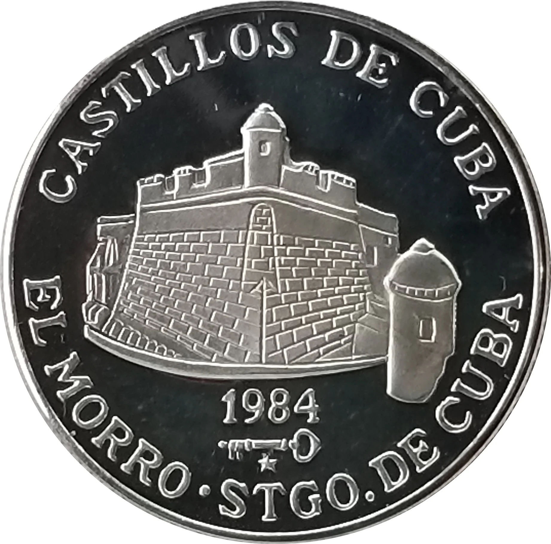 Image of "El Morro" castle in Santiago de Cuba, with the event name curved above and the place name curved below. Date beneath the image.