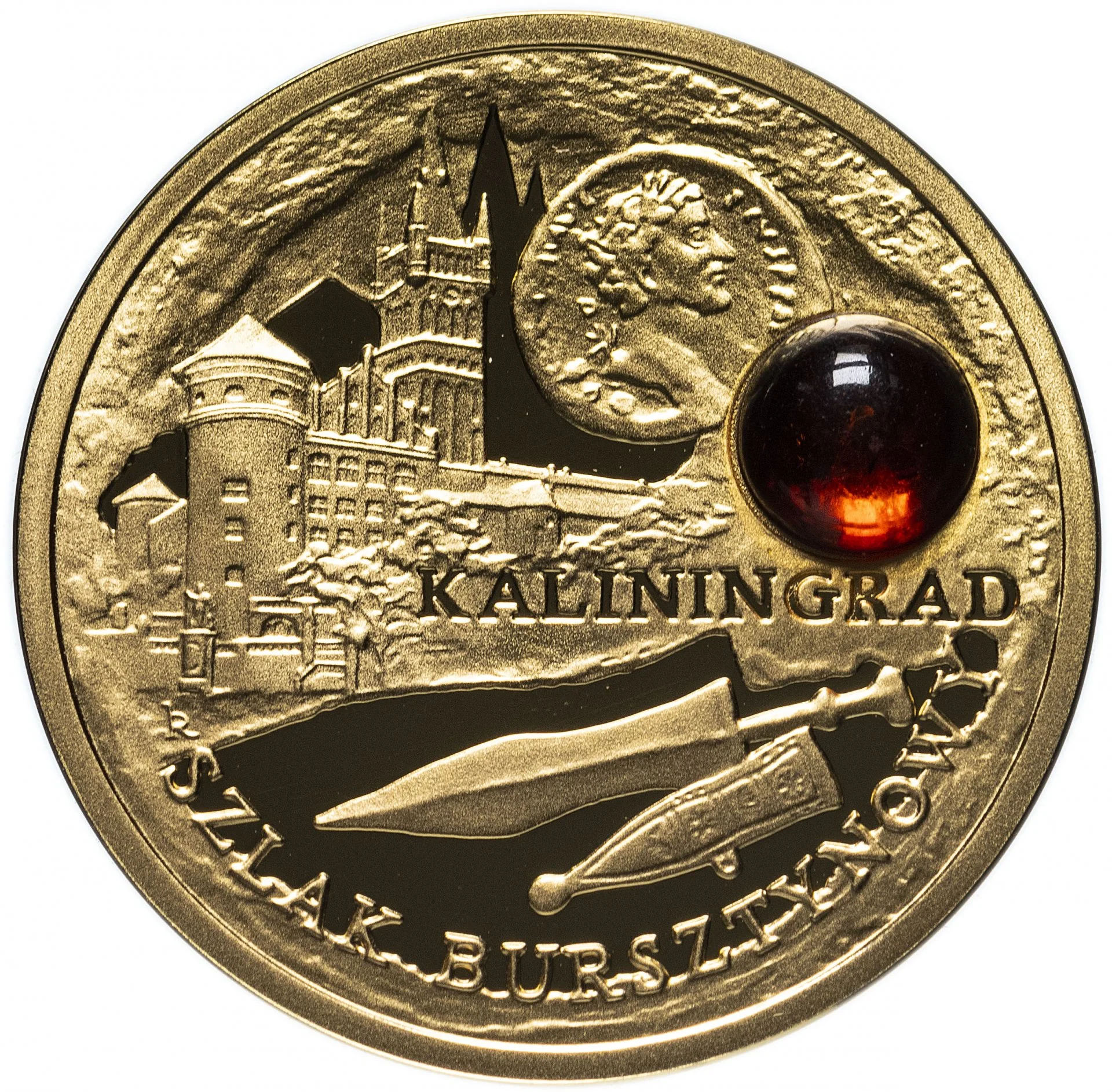 Amber stone and Roman coin before Königsberg Castle.