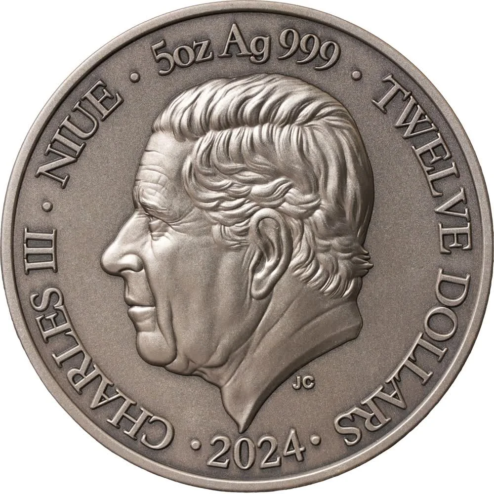 CHARLES III · NIUE · 5oz Ag 999 · TWELVE DOLLARS