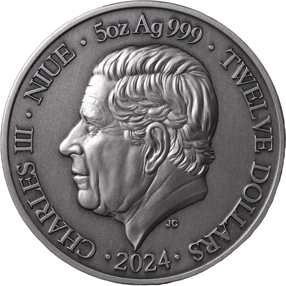 CHARLES III · NIUE · 5oz Ag 999 · TWELVE DOLLARS