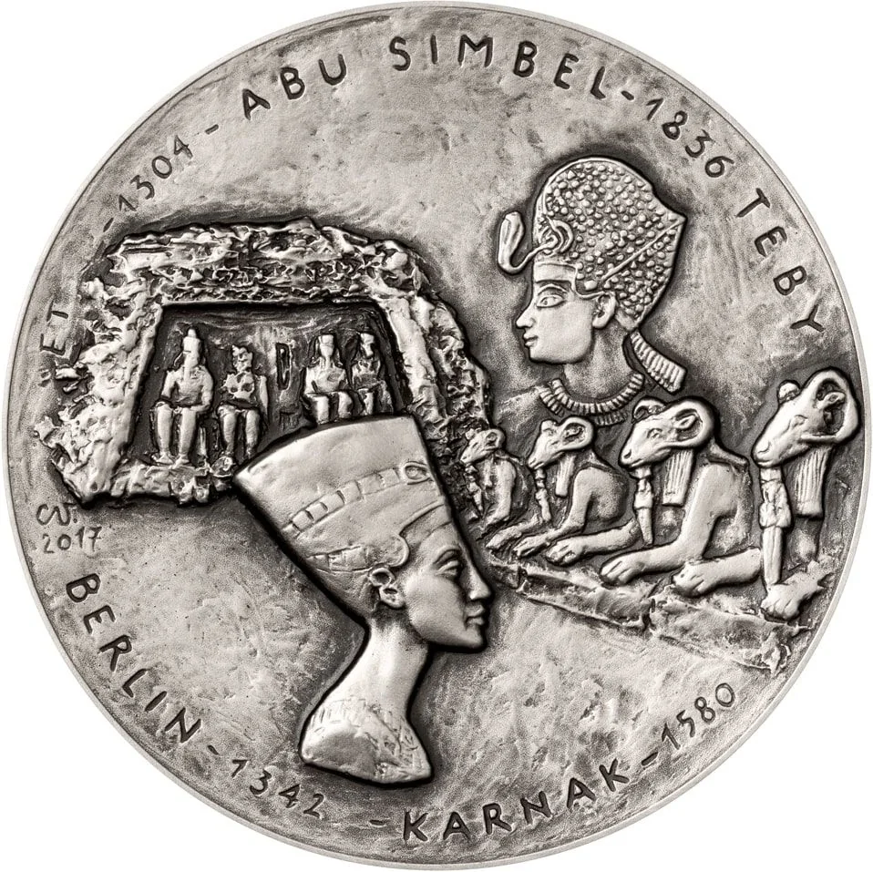 Nefertiti's bust, Abu Simbel's temple, and Karnak's sphinx avenue.