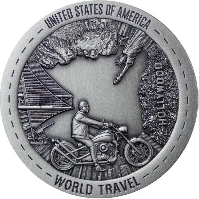 A motorcyclist touring America's landmarks.