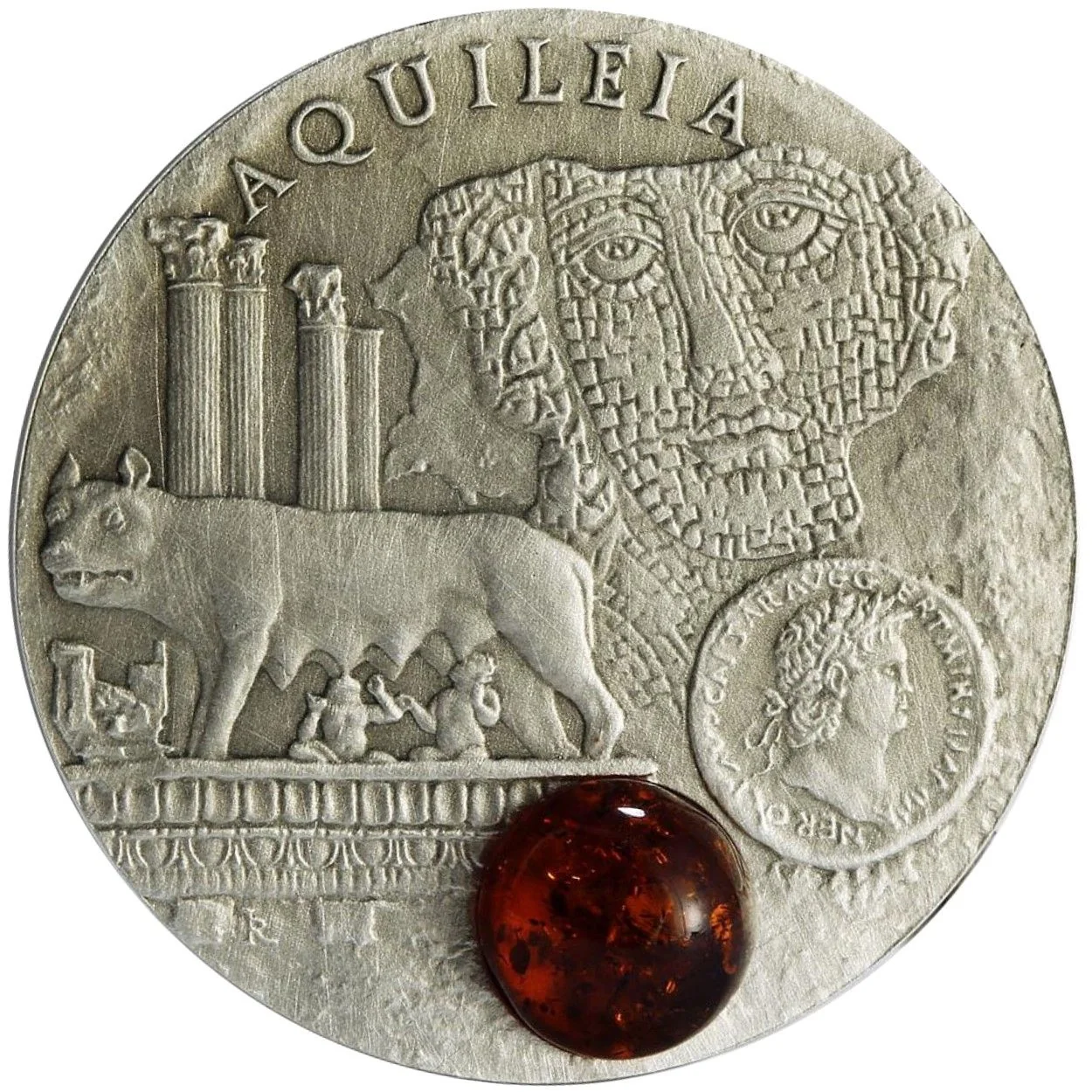Romulus and Remus with wolf, amber inlay.