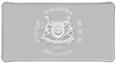 Emblem with date; 'Singapore' encircles it in English, Tamil, Chinese, and Malay.