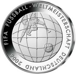 A soccer ball-shaped net frames a goal. Around it reads: "FIFA FUSSBALL - WELTMEISTERSCHAFT DEUTSCHLAND 2006".