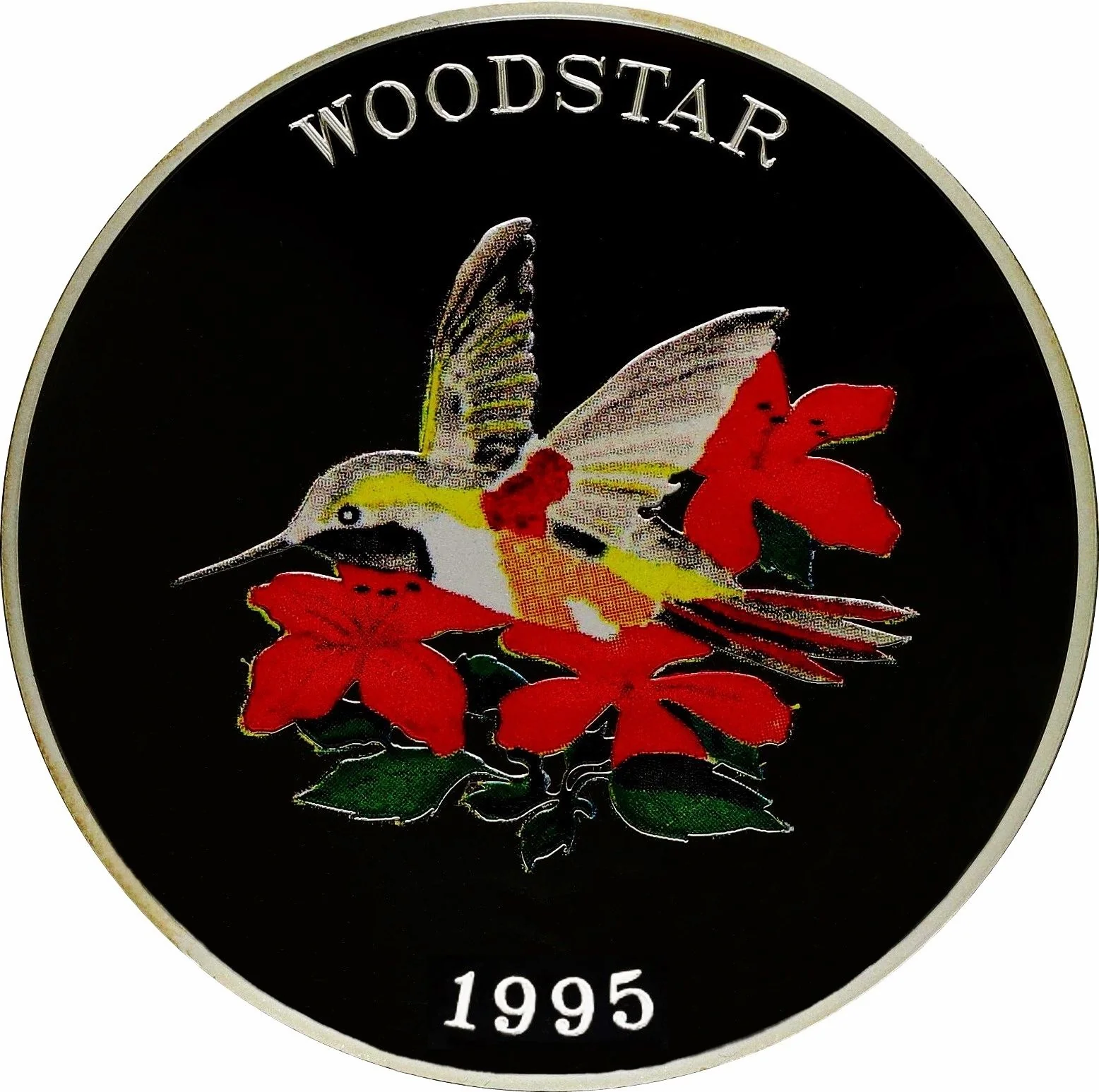 Colorized Bahama Woodstar in flowers with date.