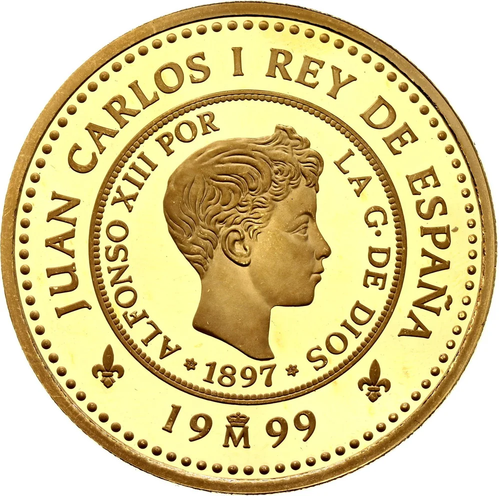 Alfonso XIII 100 Pesetas coin, 1897 obverse.