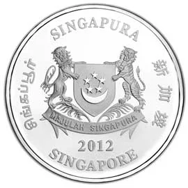 Emblem with date; 'Singapore' encircles it in English, Tamil, Chinese, and Malay.