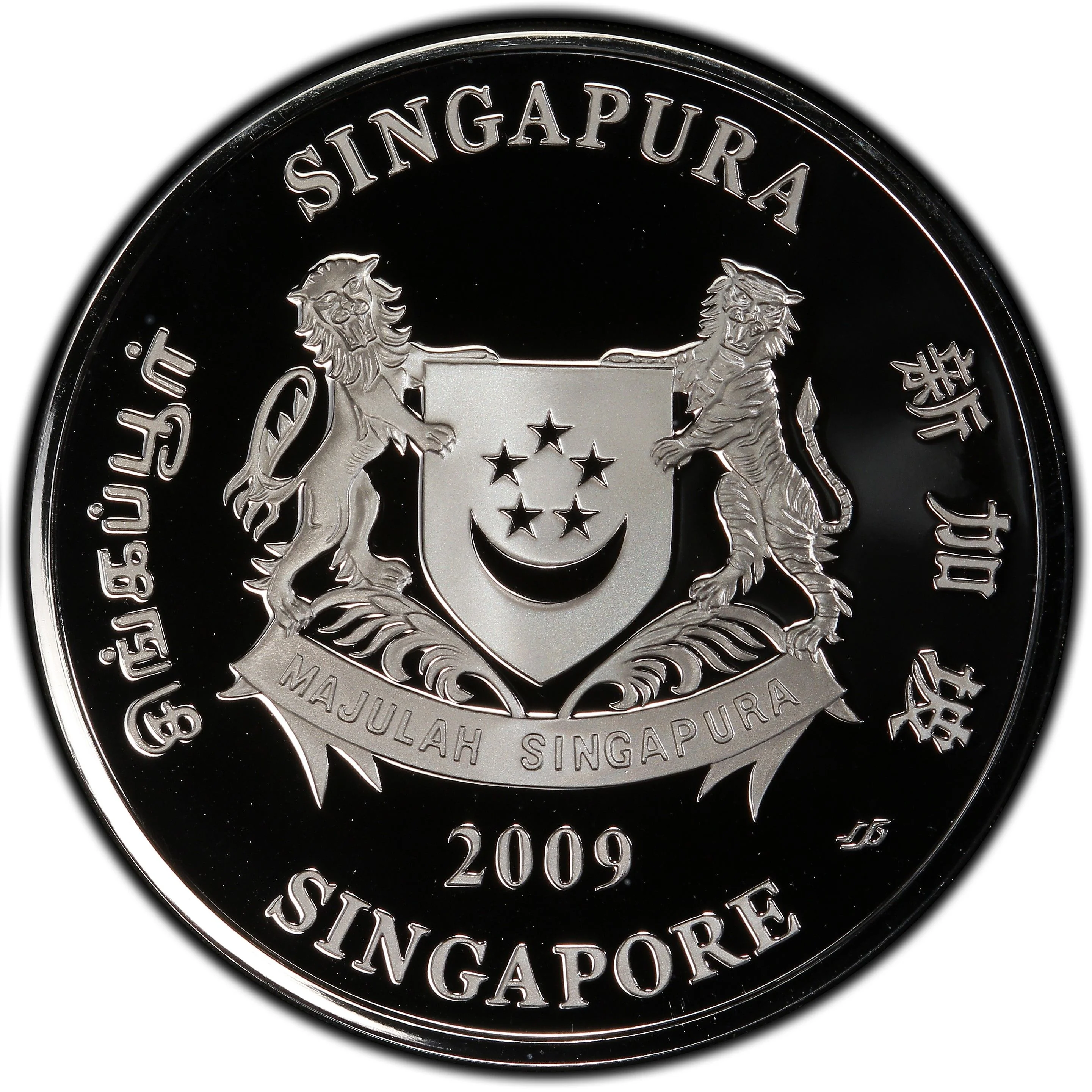 Emblem with date; 'Singapore' encircles it in English, Tamil, Chinese, and Malay.
