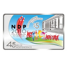 Emblem with date; 'Singapore' encircles it in English, Tamil, Chinese, and Malay.