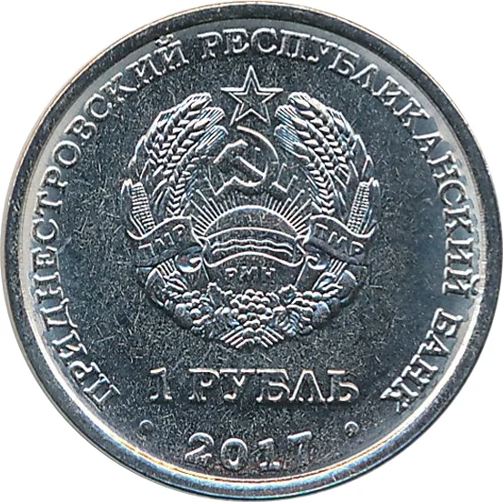 Transnistrian State Emblem, with denomination and date.