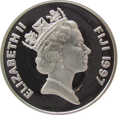 Queen Elizabeth II in profile, wearing the King George IV State Diadem.