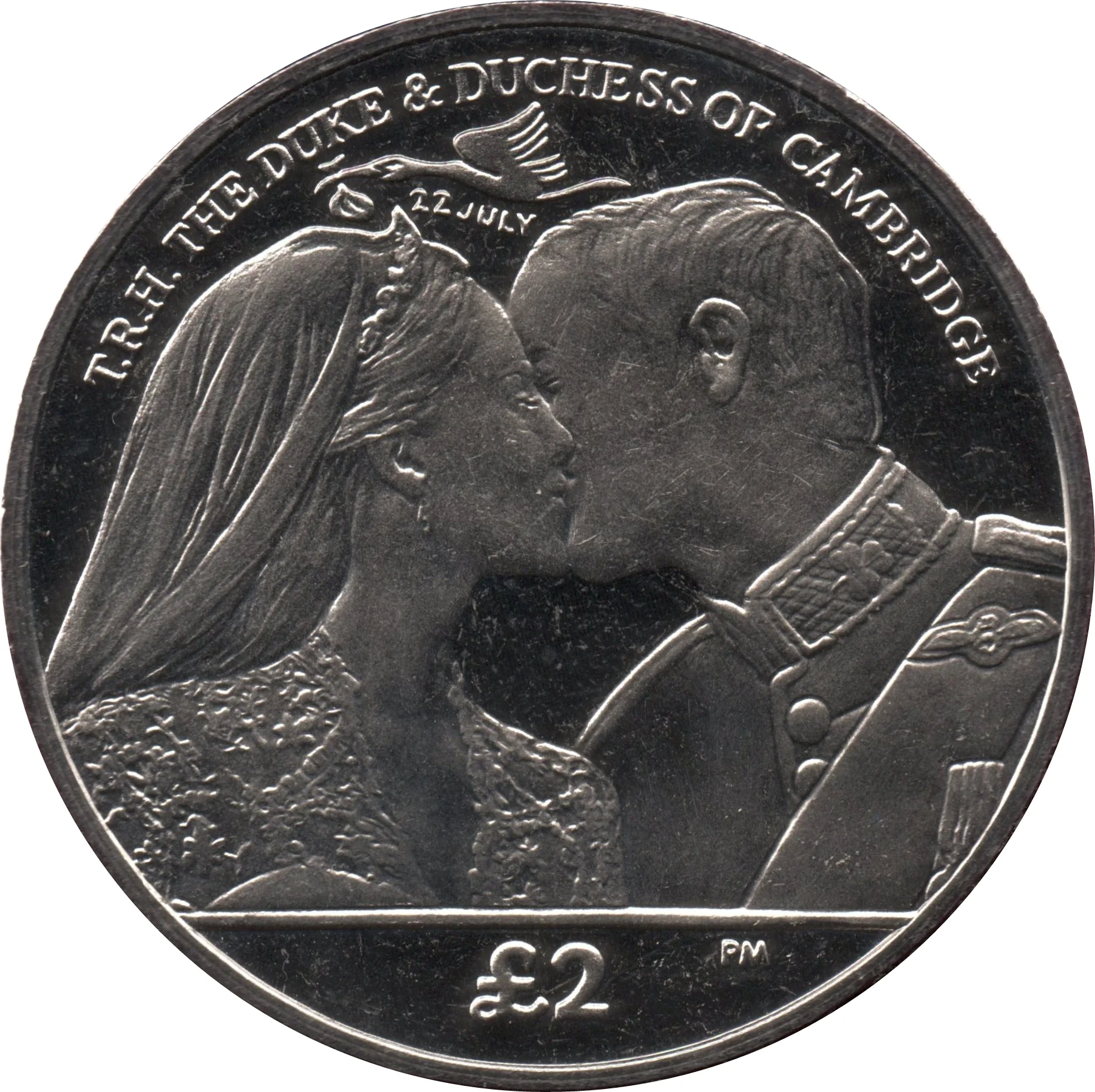 The 2012 balcony kiss coin, updated with a stork Privy Mark and Prince George's birth date.