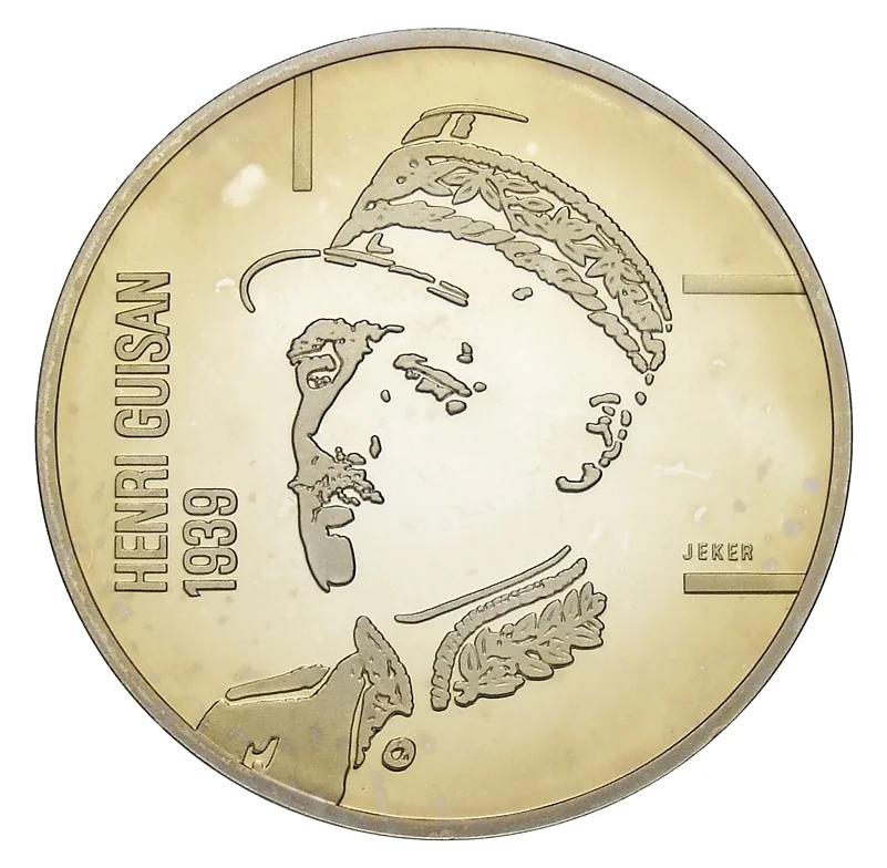 Bust of General Henri Guisan in uniform, facing left.