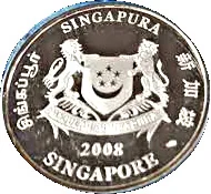 Emblem with date; 'Singapore' encircles it in English, Tamil, Chinese, and Malay.