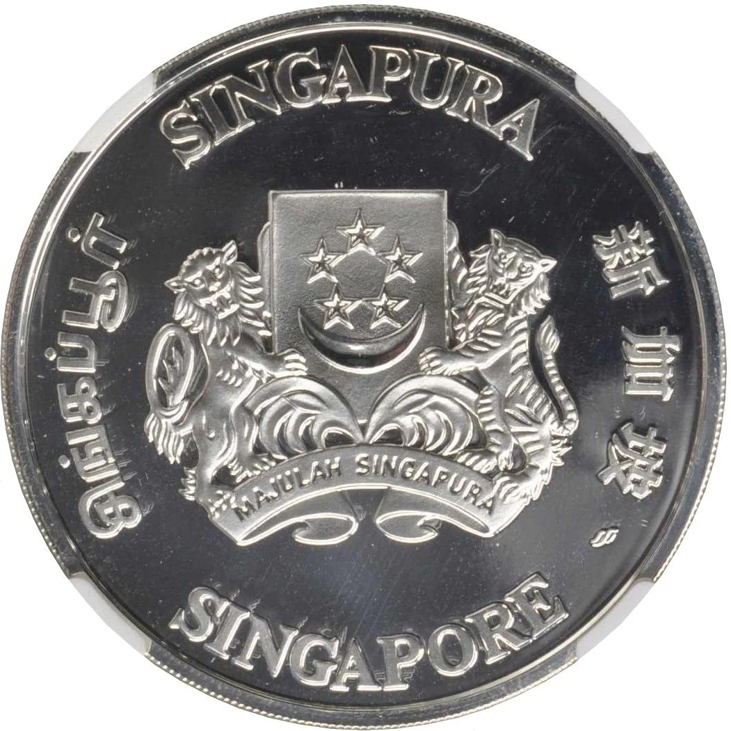 Emblem with 'Singapore' in English, Tamil, Chinese, and Malay on each side.