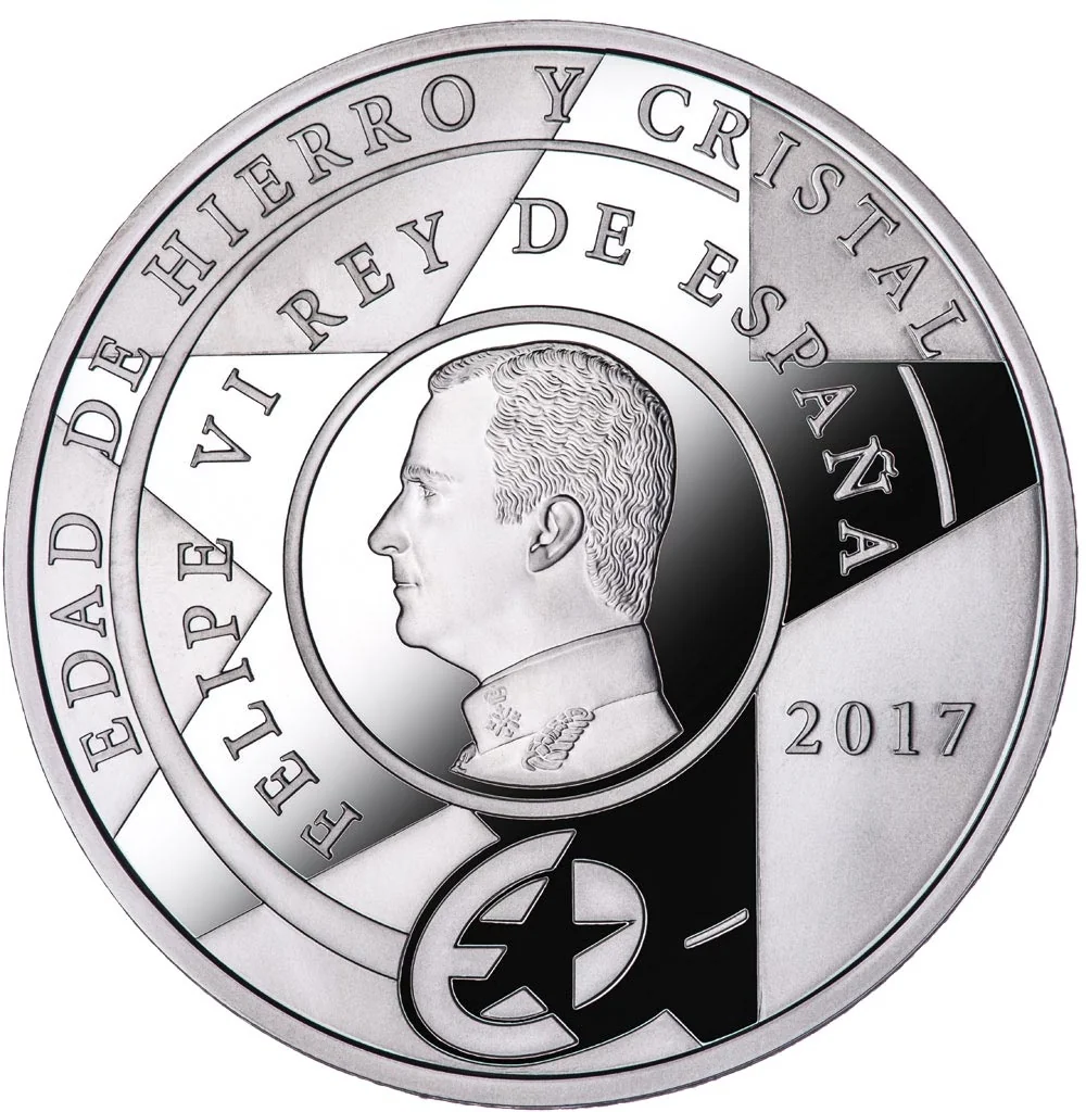 King Felipe VI facing left. Below, the shared Europe Program mark with a five-pointed star in the background.