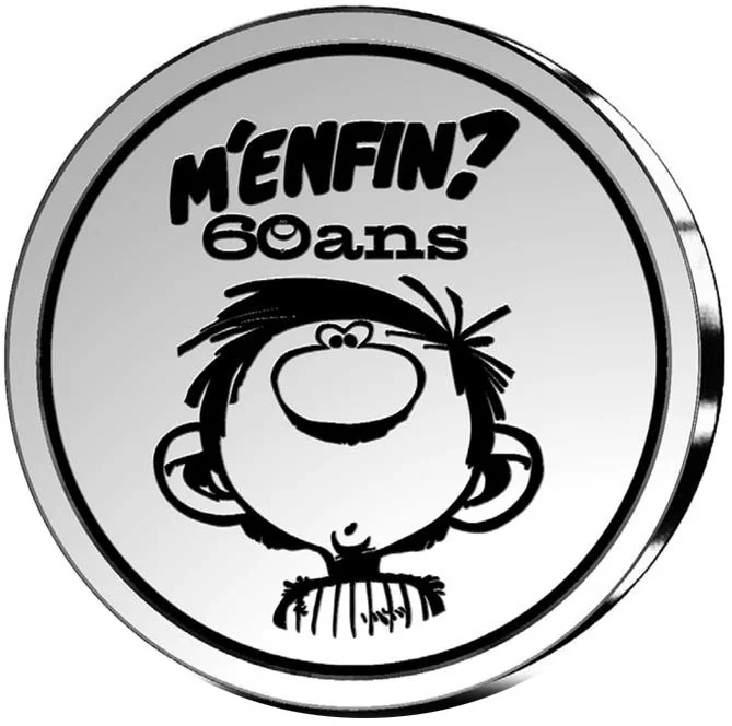 Gaston Lagaffe's head with "M ENFIN?" and "60ans" above.