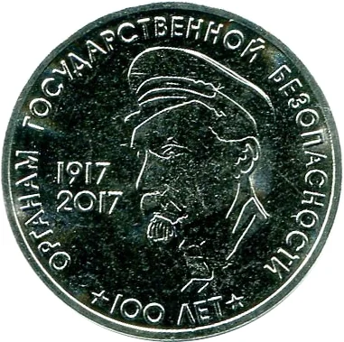 Description: Center: State Emblem of the Transnistrian Moldovan Republic. Rim: top, "ПРИДНЕСТРОВСКИЙ РЕСПУБЛИКАНСКИЙ БАНК"; bottom, issue year "2017". Below the emblem: denomination.