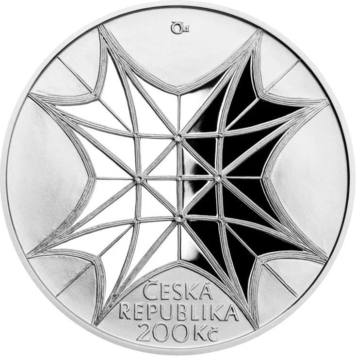 Chapel layout, Czech Mint logo (ČM), country and value.