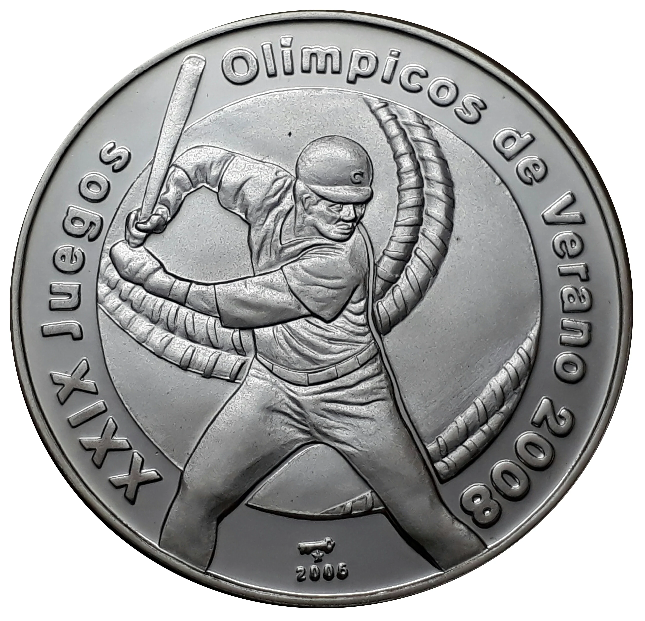 Baseball player, ball background. Event name in circular legend, date on exergue.
