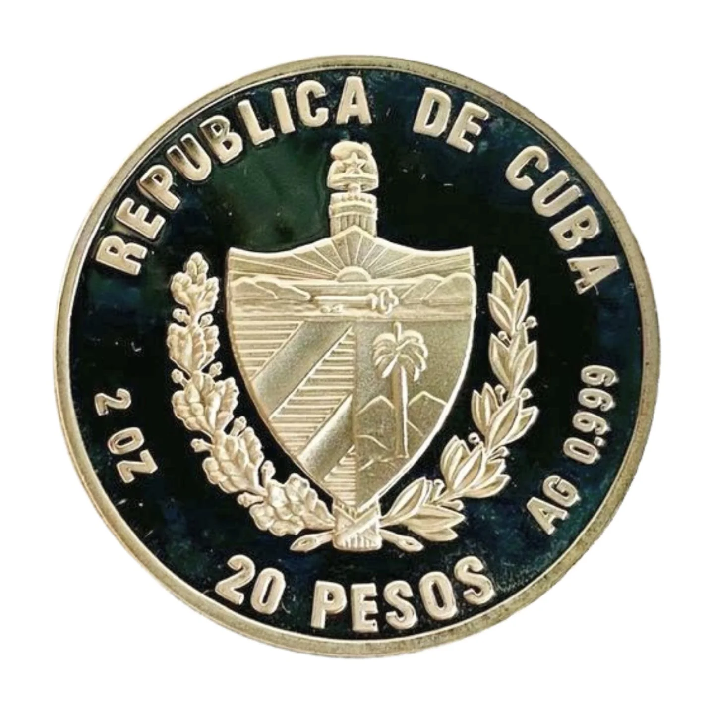 Cuban coat of arms, weight, and fineness on sides; face value below. Design matches others in the series.