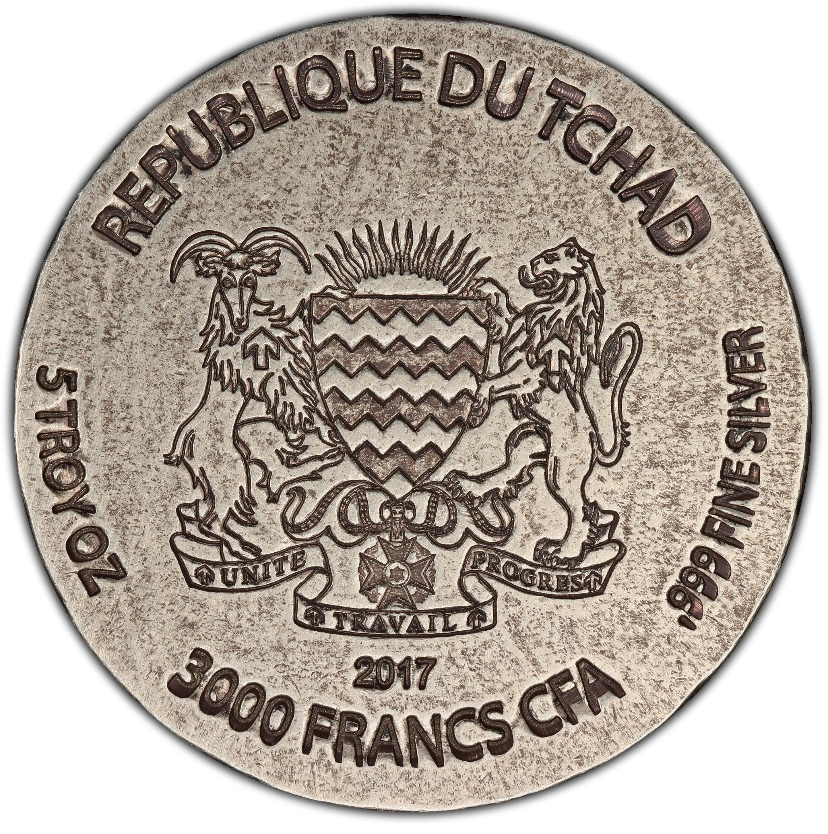 5 TROY OZ 3000 FRANCS CFA .999 FINE SILVER