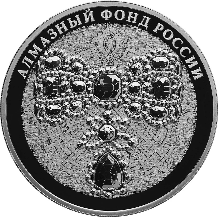A silver proof coin featuring a relief of bow-sklavazh, with the inscription АЛМАЗНЫЙ ФОНД РОССИИ around the top edge.