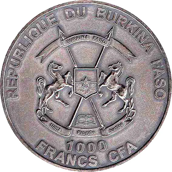 A shield flanked by stallions, topped by a banner and flanked by two spears.