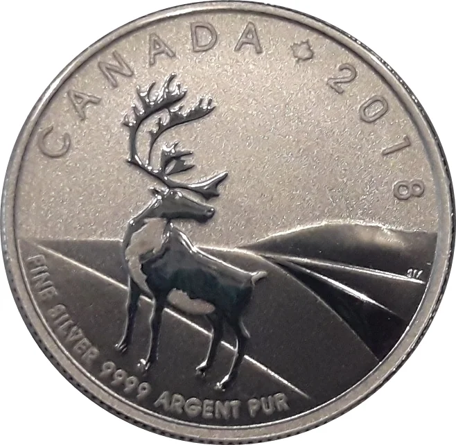 The reverse depicts a caribou, its large antlers prominent against a stylized landscape.