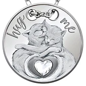 Two cuddled cats with a heart-shaped crystal below.