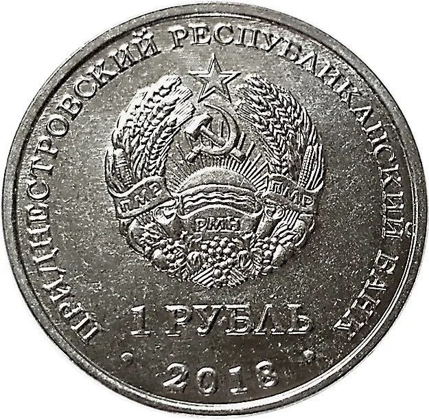 Transnistrian State Emblem, with denomination and date.