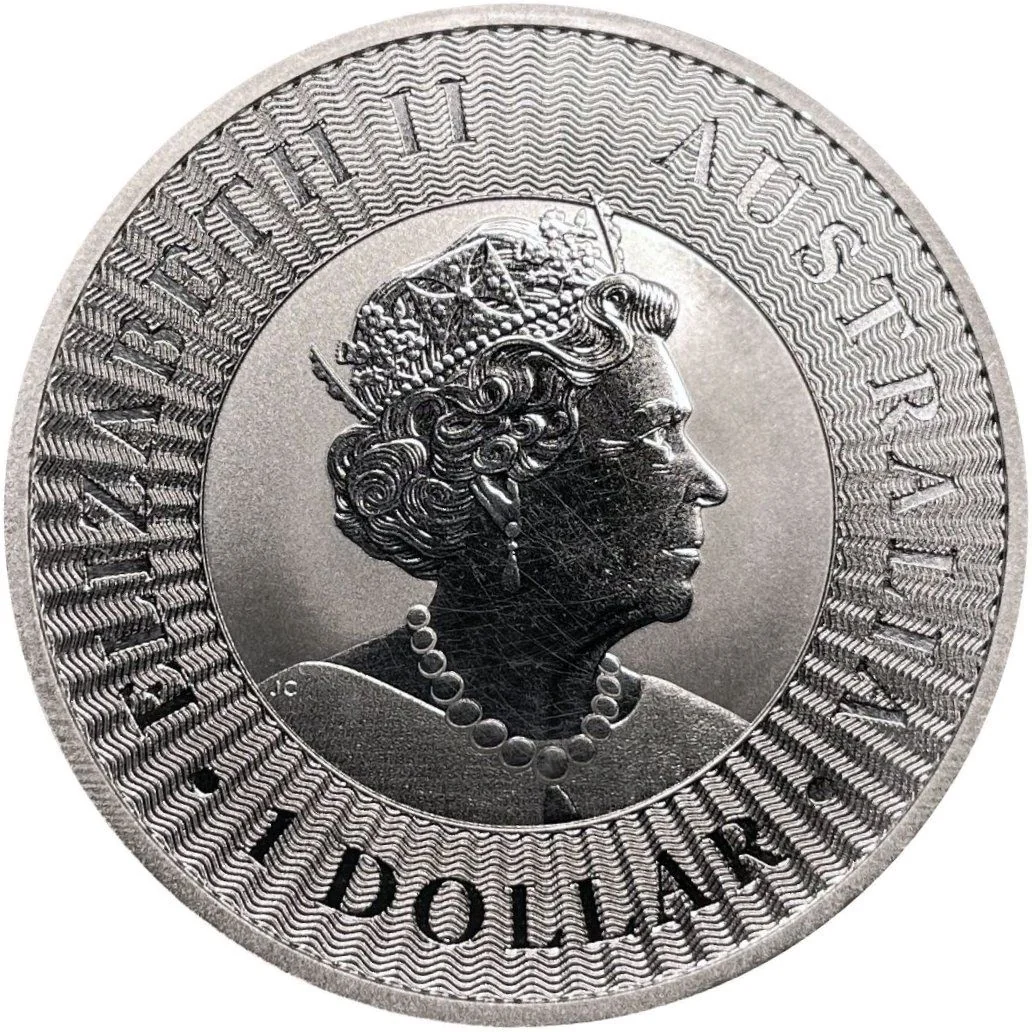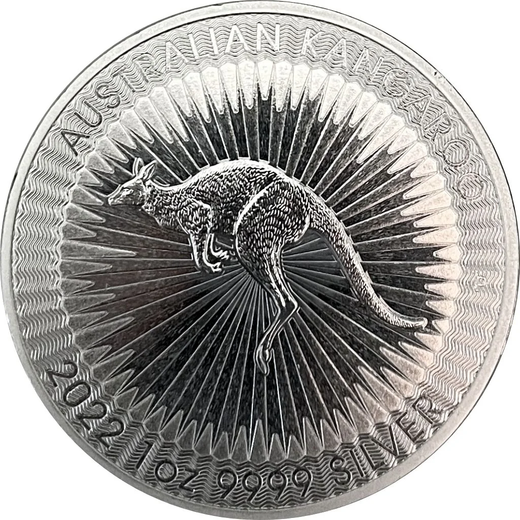 Red Kangaroo facing left, mint mark right. Date, purity, and metal below.