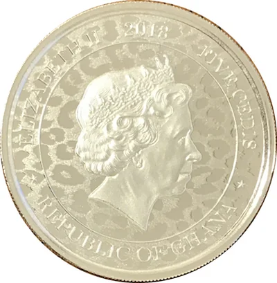 Queen Elizabeth II effigy on leopard skin with date and denomination above.