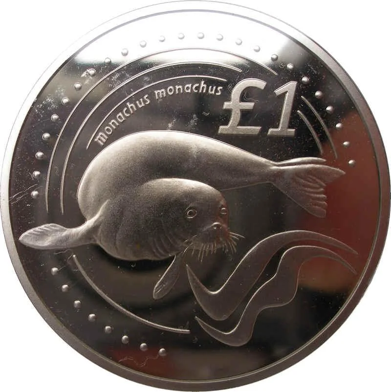 Description: Cyprus's coat of arms features a dove with an olive twig above the year 1960, encircled by laurels. The country's name appears in English, Turkish, and Greek at the top, with the date below.