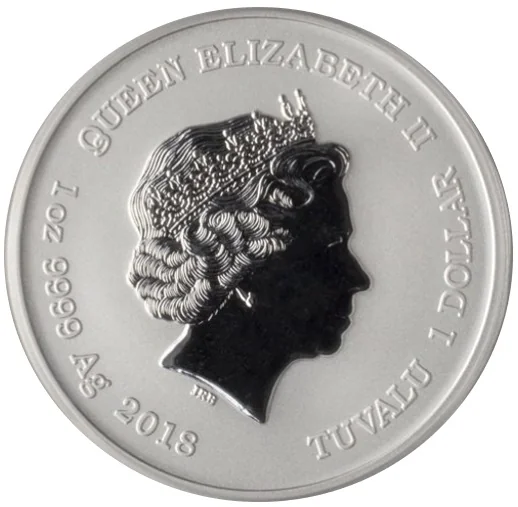 The obverse features Ian Rank-Broadley's portrait of Queen Elizabeth II, the denomination, weight, and purity.