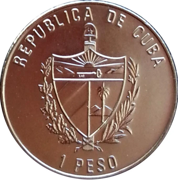 Cuban coat of arms with curved country name above and face value below.