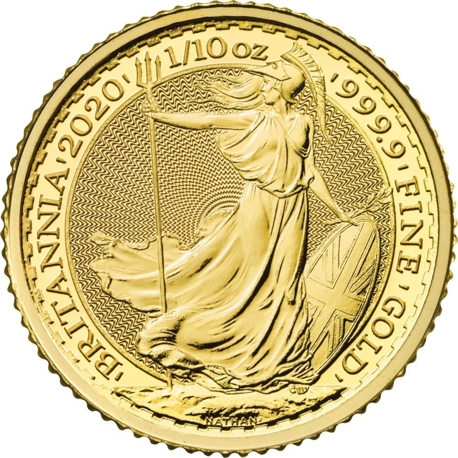 ' BRITANNIA ' 2020 ' 1/10 oz ' 999.9 ' FINE ' GOLD '