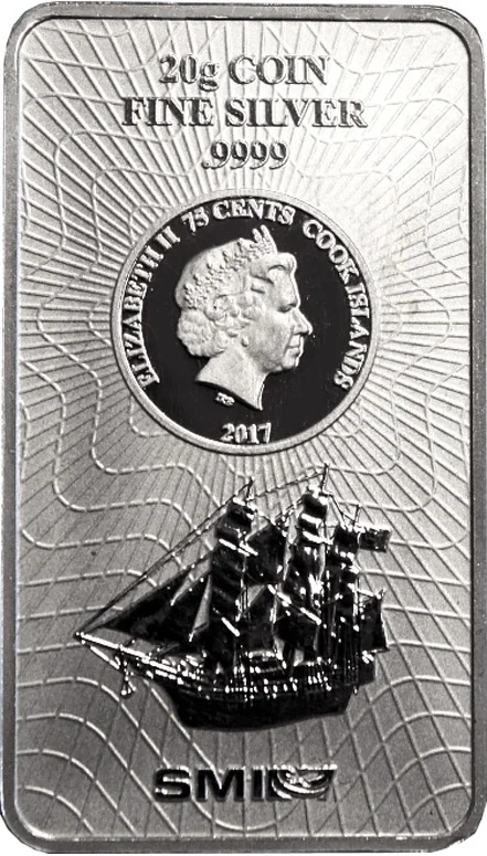 Description: Queen Elizabeth II above the ship Bounty, with weight, purity, and face value details within a net-like border.