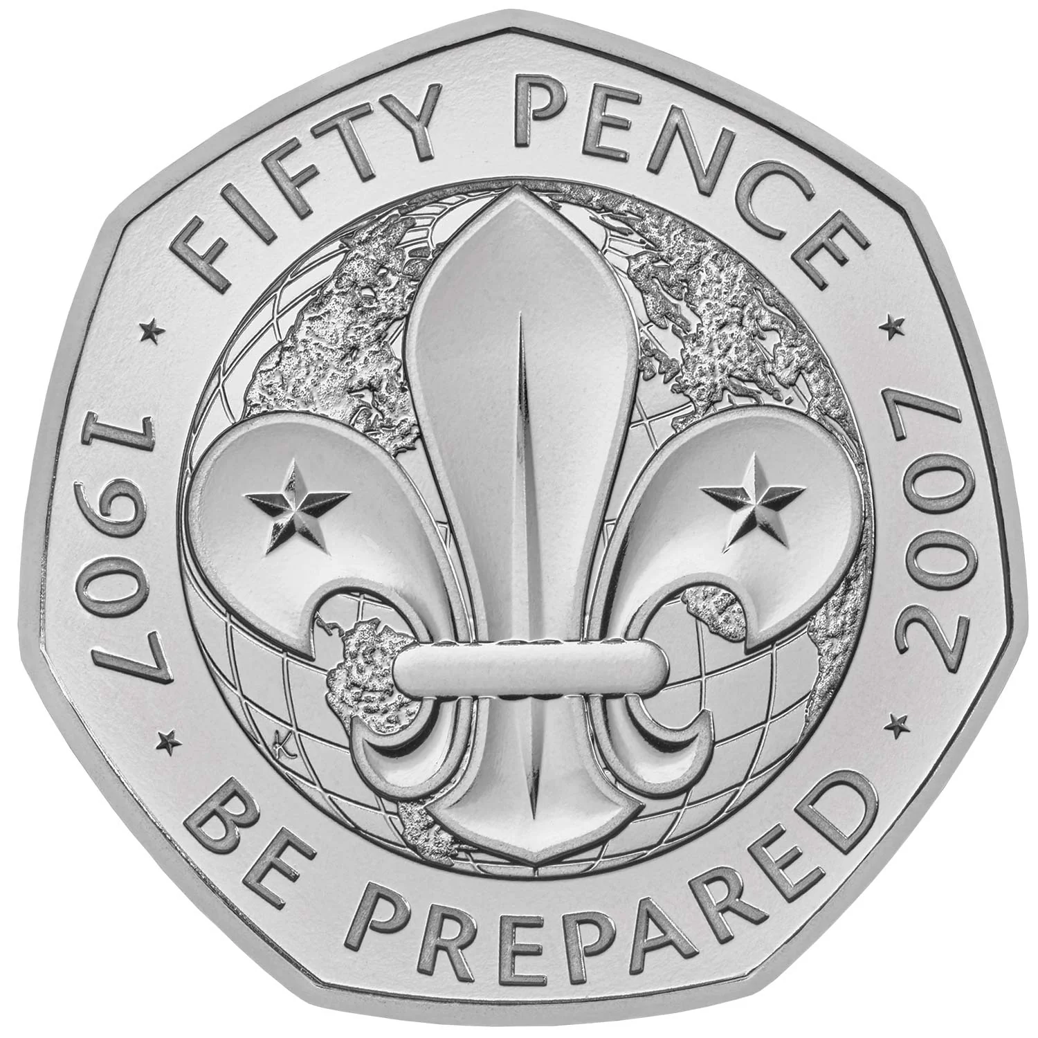 Scouting fleur-de-lis between dates, denomination above, legend below.