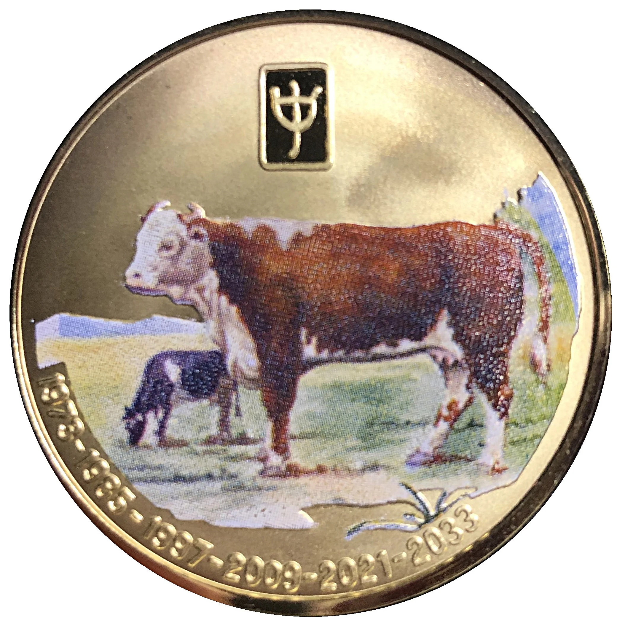 Colourized ox and calf on pasture. Below: all Ox zodiac years.