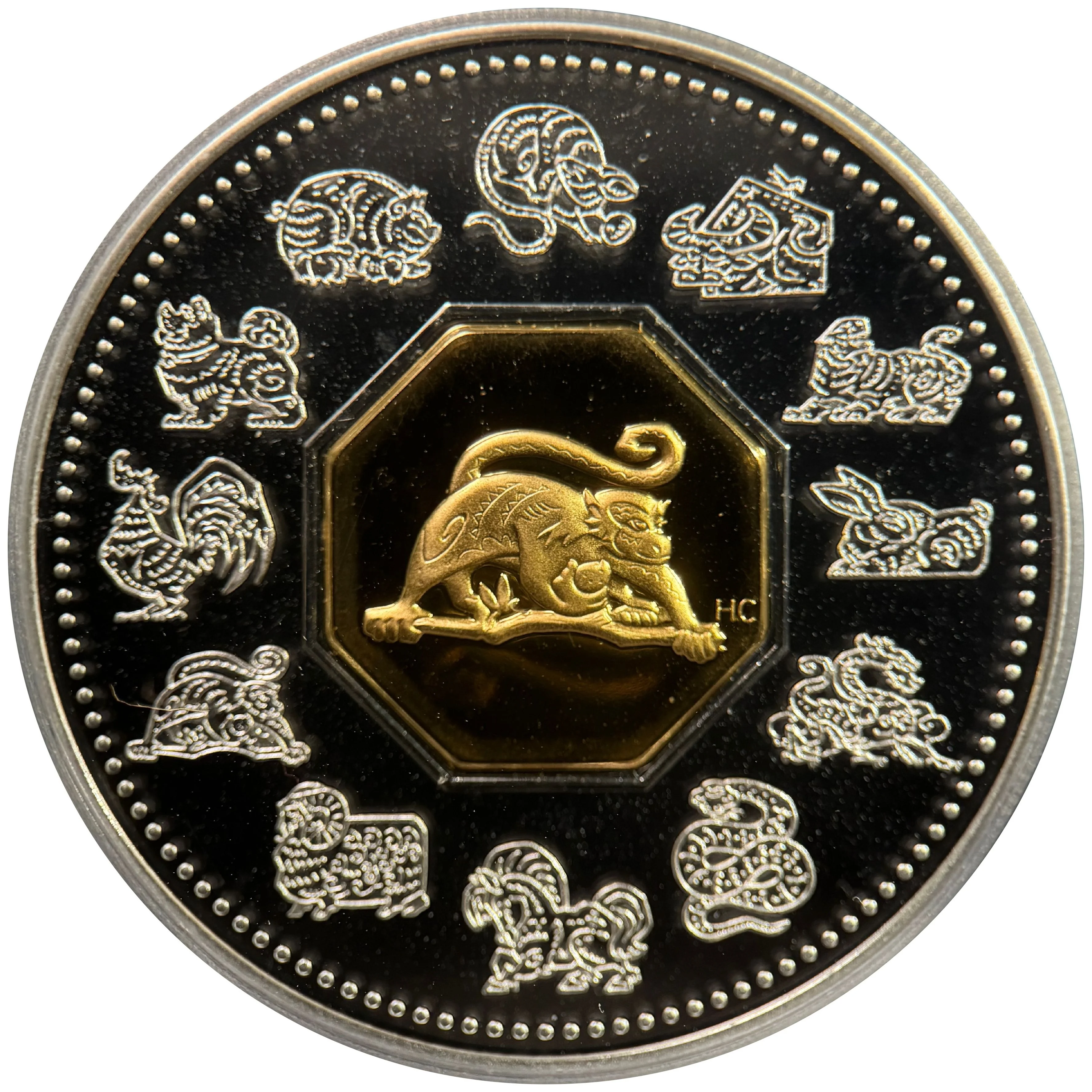 A 24k gold-plated cameo with a central monkey, encircled by the other lunar year animals.