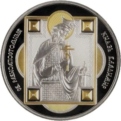 The reverse depicts Saint Vladimir in gilded iconography.