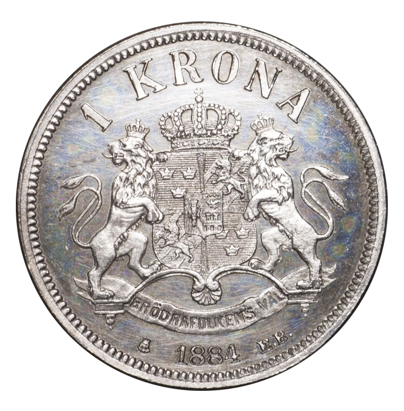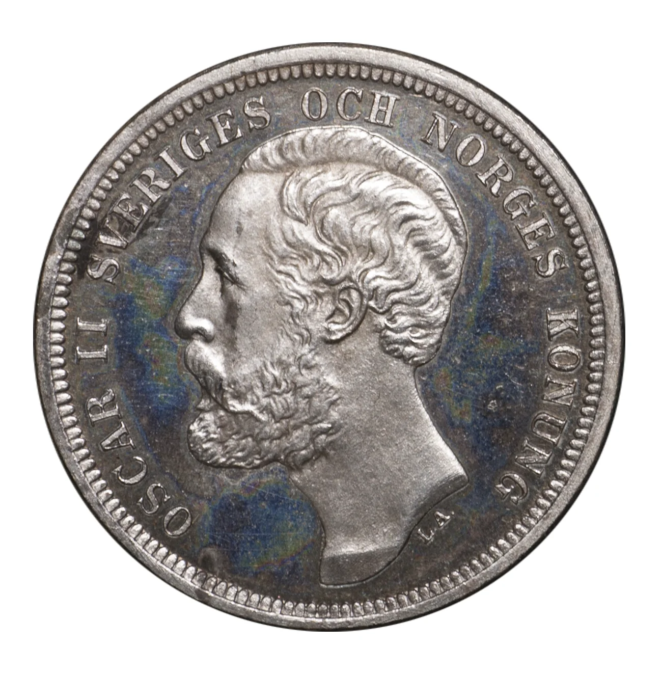 In 1877, Sweden was in the final stages of a complex monetary transition, operating under a de facto silver standard while formally adhering to the Scandinavian Monetary Union (SMU) established with Denmark in 1873 (and joined by Norway in 1875). The union created a common gold standard, with the Swedish krona (crown) replacing the former riksdaler riksmynt as the new unit of currency, pegged to gold at a rate of 2,480 kronor per kilogram of fine gold. However, the practical shift was gradual; older silver coins remained legal tender alongside the new gold coins, creating a period of bimetallic circulation.
