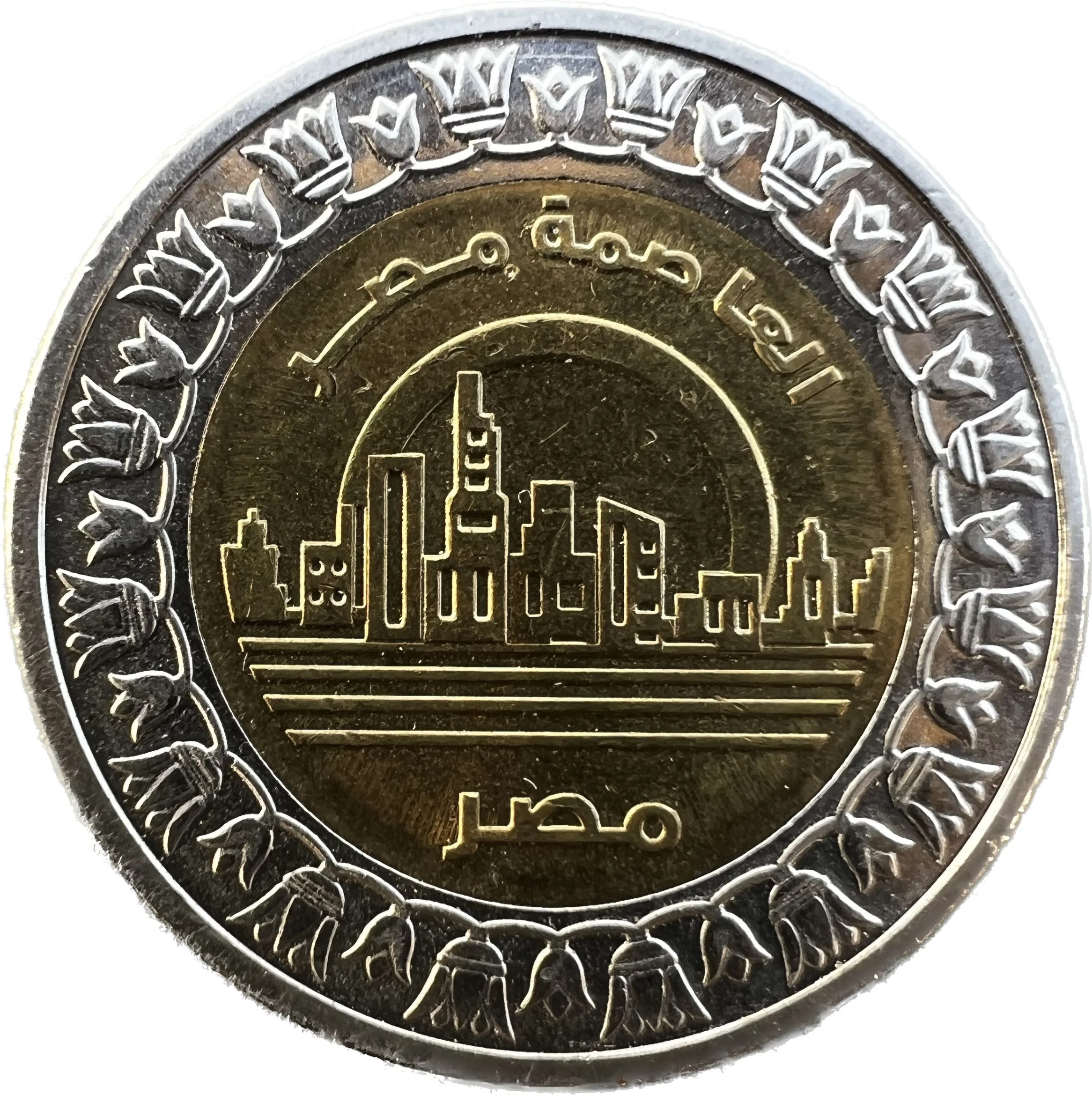 Capital Egypt العاصمة مصر above a sun-topped building and streets. Below: Egypt مصر.