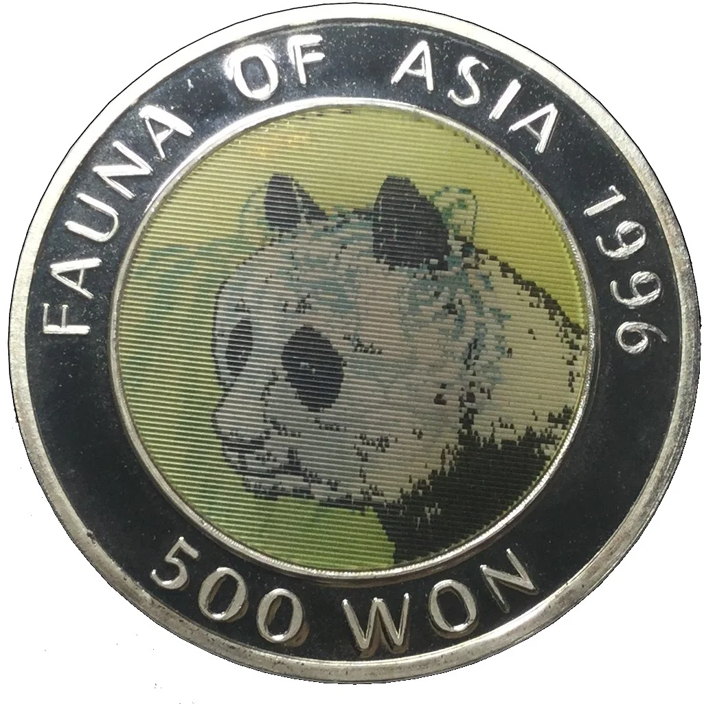 Giant panda and tiger, facing opposite sides (image flips). Date on right, denomination below.