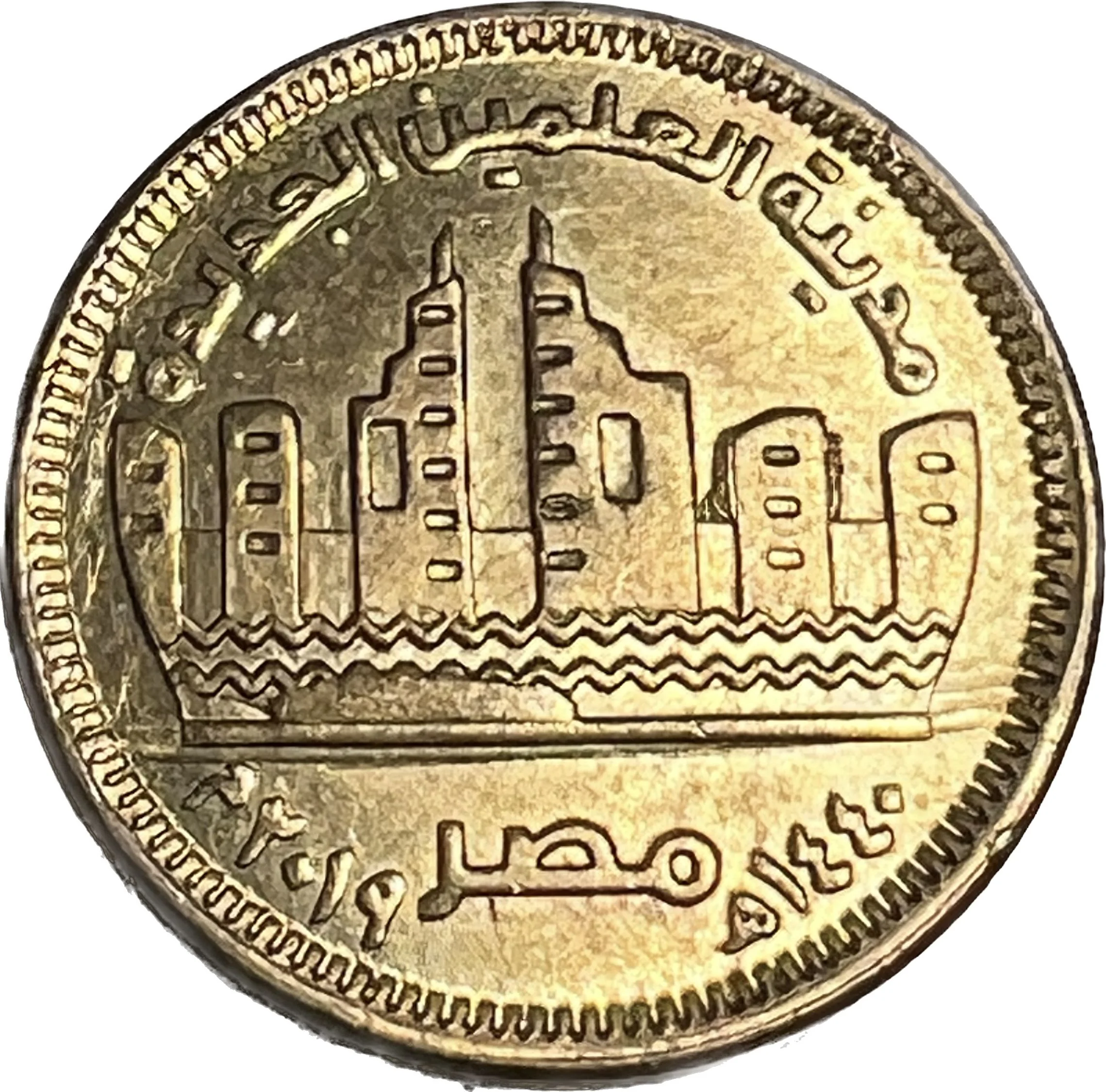 A sea-shaped building complex. Above: "Alamain New City مدينة العلمين الجديدة". Below: "Egypt مصر" and the date.