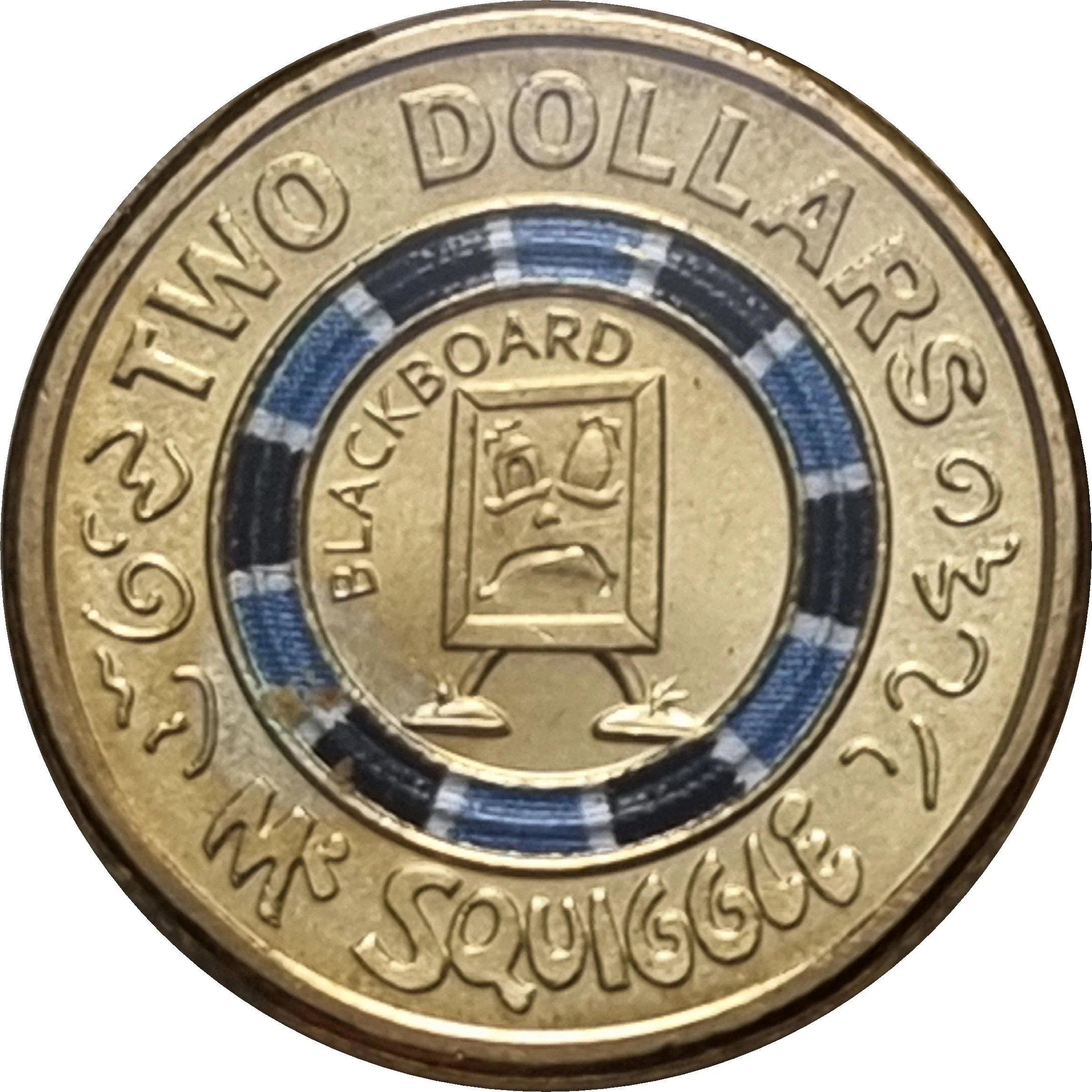 Blackboard with a central black, blue, and white ring. Eleven squiggles in the outer ring.