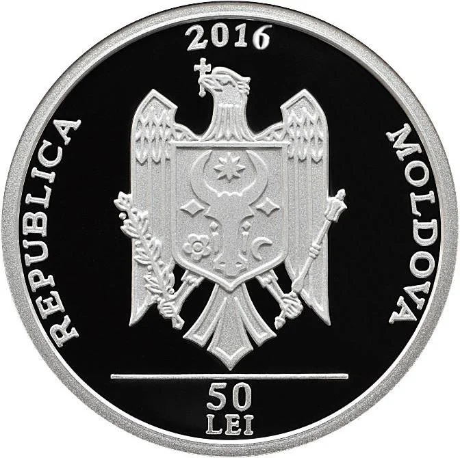 - Central: Coat of Arms of Moldova.