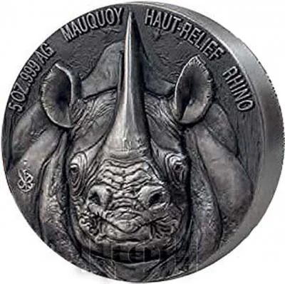 5 OZ .999 SILVER MAUQUOY HAUT-RELIEF RHINO